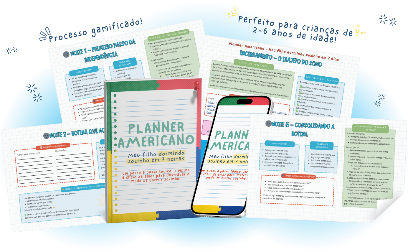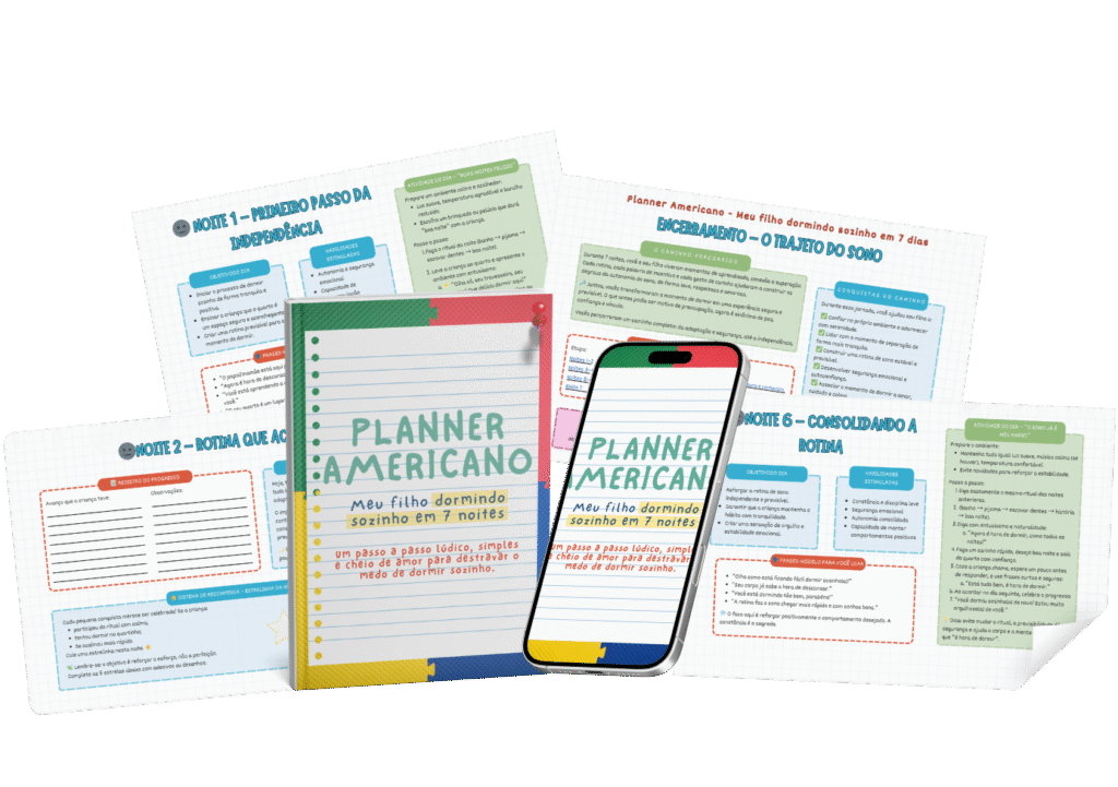Se você quer que ele aprenda a dormir sozinho sem choro, medo ou traumas, esse planner mostra exatamente como fazer de forma acolhedora e segura.